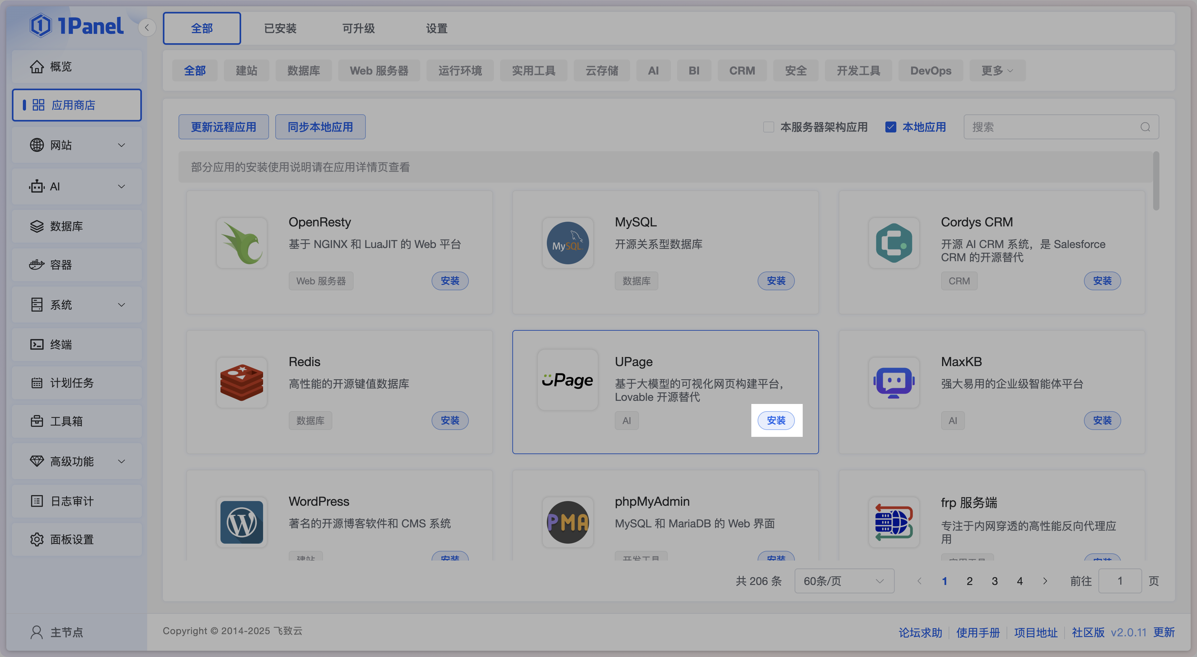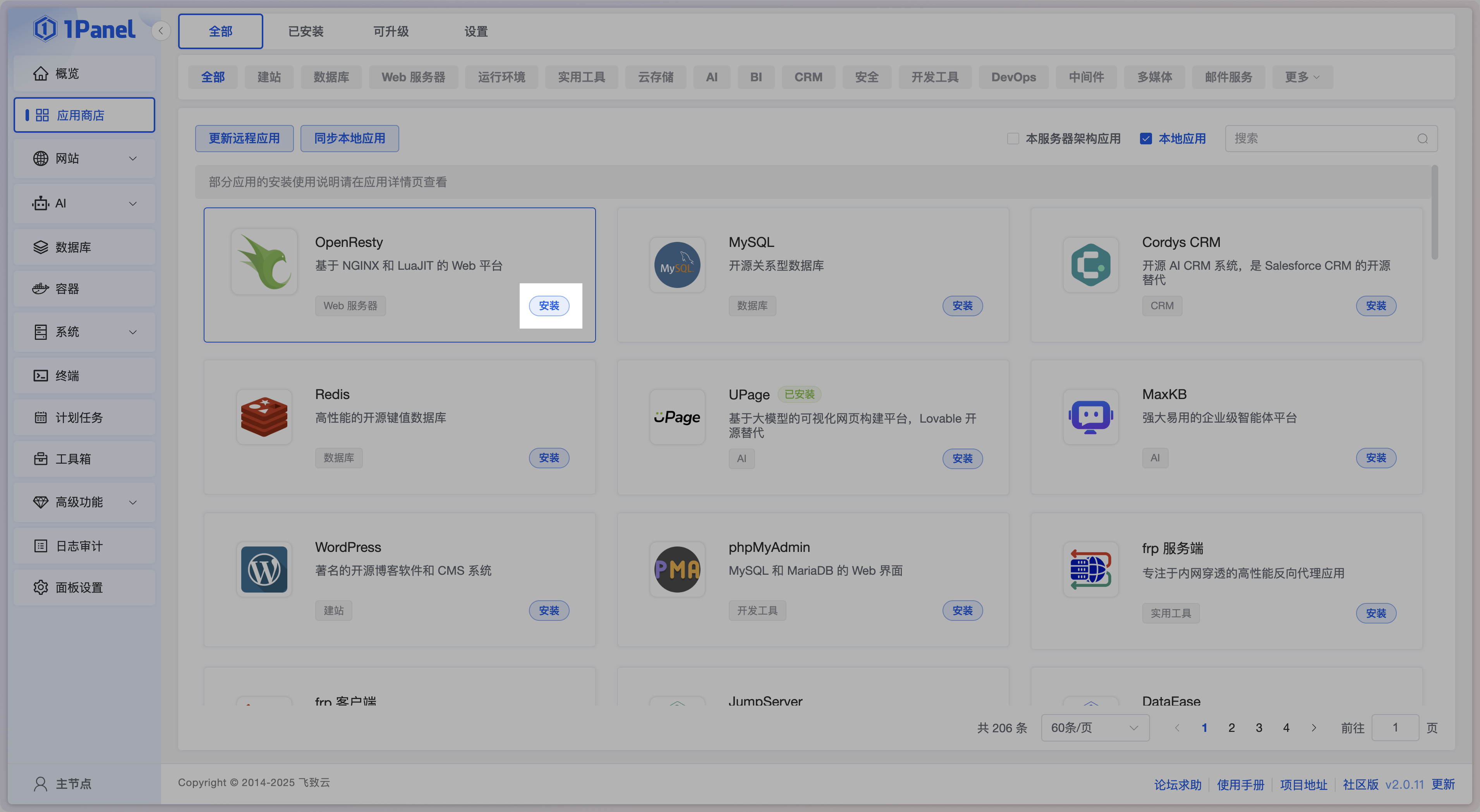 关于 1Panel 的安装部署与基础功能介绍,请参考 1Panel 官方文档。此处假设你已经完成了 1Panel 的安装部署,并对其功能有了基础了解。